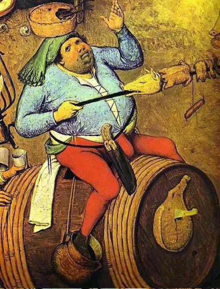 Co jest za plecami starej bijatyki Karnawału z Postem? Wyobraźcie sobie, że zwyczajne życie. Kto ma co jeść, ten je. Kto ma co pić - pije. Schlany śpi, bo schlany. Handlarka rybami - handluje rybami. Paralitycy - czołgają się. Kulawi - kuleją. Prości się nie garbią, garbaci się nie prostują. Pokutnicy pokutują, rozpustnicy dziwek wypatrują. Ktoś krzyczy, ktoś milczy, ktoś płacze, ktoś śmieje się, ktoś tańczy, ktoś kostnieje, wóz ciągnie ktoś. Słowem - obojętność świat ocalająca. Post Postem, Karnawał Karnawałem, ale przecież trzeba jakoś dociągnąć do jutra, choćby to miało się skończyć męką piekielną... A co z panem w kraciastym kaszkiecie?